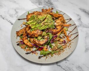 | Grilled chicken, rocket, cherry tomatoes, pumpkin and sunflower seeds, chickpeas, mixed salad and fried shallots with a nectar dressing (Vegan? Swap chicken for falafel or tofu)) | |